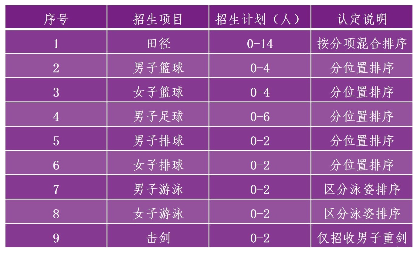 高水平运动队招生计划严格按照教育部的有关规定执行,各项目计划录取人数为: